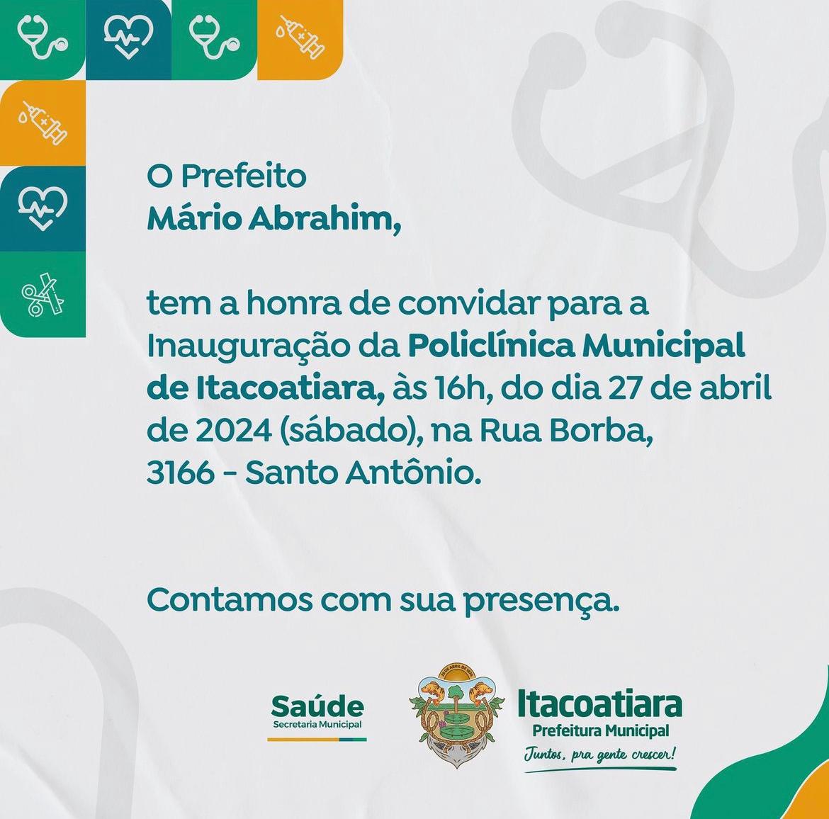 Vem aí mais uma entrega da Prefeitura, a Inauguração da Policlínica Municipal de Itacoatiara!