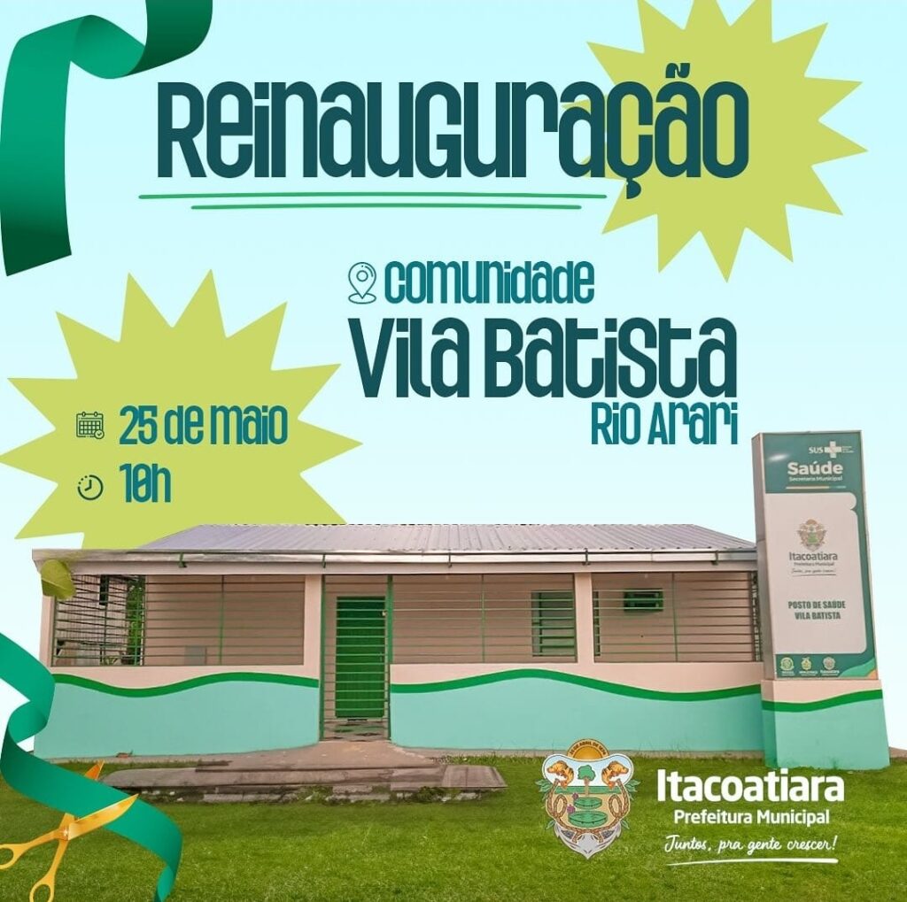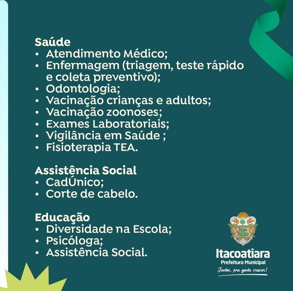 Neste sábado (25), ações e serviços da Prefeitura estão chegando na região do rio Arari. A comunidade Vila Batista será o nosso ponto de encontro para a oferta de serviços de Saúde, Assistência Social, Educação e muito mais. Veja alguns dos serviços: