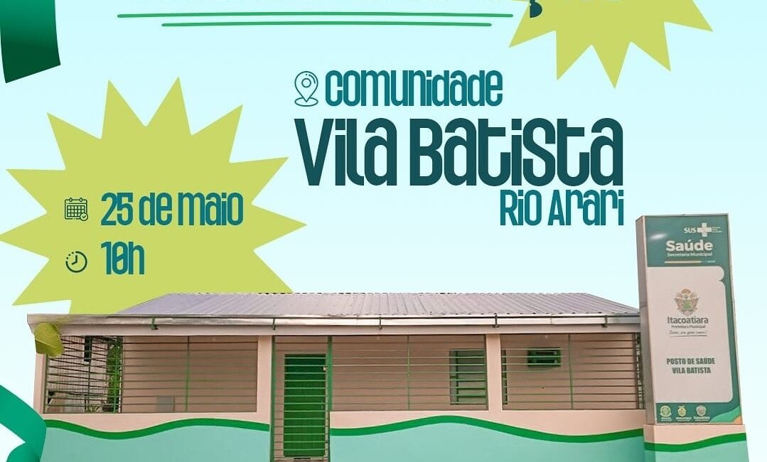 Neste sábado (25), ações e serviços da Prefeitura estão chegando na região do rio Arari. A comunidade Vila Batista será o nosso ponto de encontro para a oferta de serviços de Saúde, Assistência Social, Educação e muito mais. Veja alguns dos serviços: