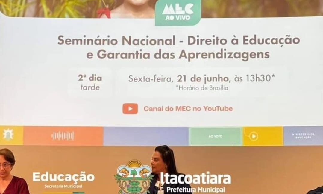 A Secretaria Municipal de Educação esteve nos últimos dias 20 e 21 de junho, em Brasília, representando o município, nos ítens: políticas públicas intersetoriais em tempos de crises climáticas e avanços na educação, no Seminário Nacional de Garantias de Aprendizagem, teve como pontos centrais o diálogo e compartilhamento das suas práticas exitosas e também os pactos Nacionais das Escolas das Adolescências e o de Recomposição de Aprendizagens. Itacoatiara está entre os municípios que mais têm investido em políticas públicas de apoio e proteção ao direito das aprendizagens, superando desafios e avançando cada vez mais.