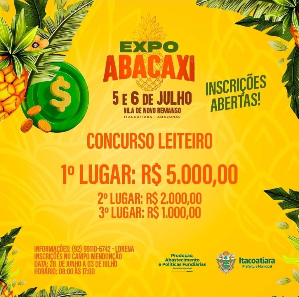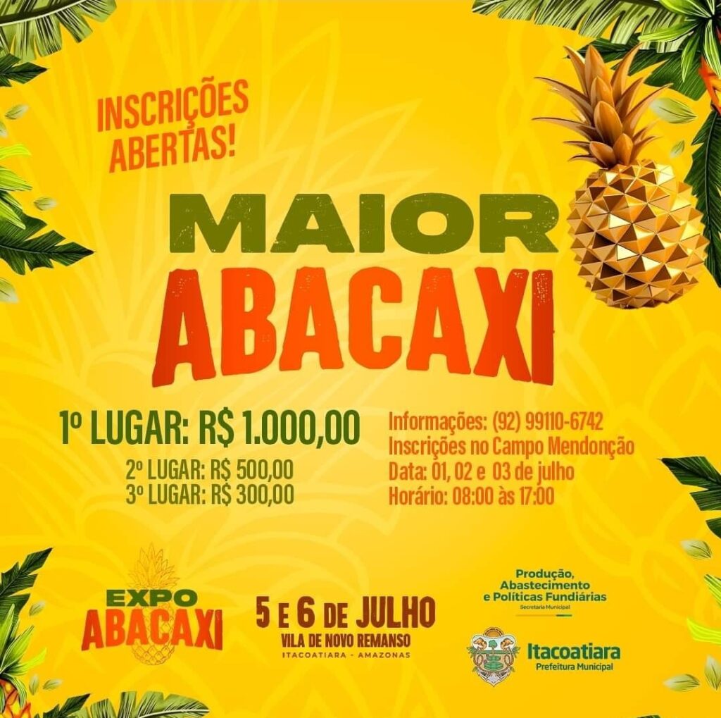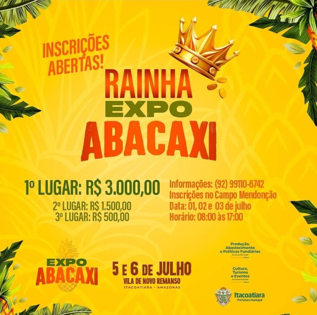 Estão abertas as inscrições para os concursos da 1ª edição da Expo Abacaxi na Vila de Novo Remanso.