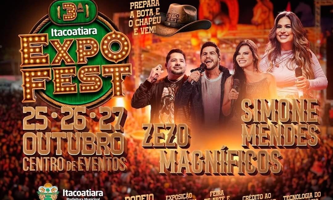 Vem aí a 3ª edição da ExpoFest Itacoatiara, o maior evento de shows de todo o estado do Amazonas! Nos dias 25, 26 e 27 de outubro, o Centro de Eventos Juracema Holanda será palco dessa grande festa, que já se consagrou como referência em entretenimento e cultura agropecuária.