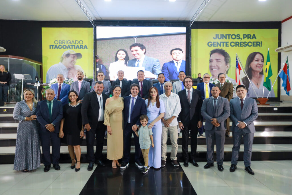 Em cerimônia realizada no Templo Central da Assembleia de Deus, em Itacoatiara, o prefeito Mário Abrahim e a vice-prefeita Marcela Cristine tomaram posse para o segundo mandato nesta quarta-feira (1º/01). A sessão extraordinária, presidida por Arialdo Guimarães (MOBILIZA), presidente eleito da Câmara Municipal, reuniu vereadores, autoridades municipais e eclesiásticas, além de um grande número de cidadãos.