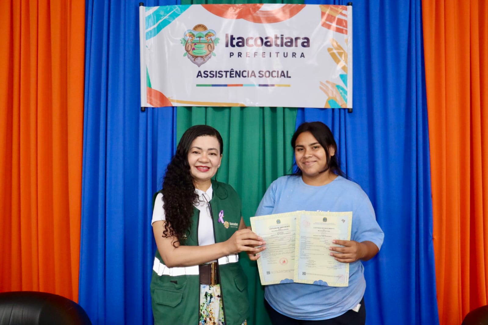 A Prefeitura de Itacoatiara, por meio da Secretaria Municipal de Assistência Social, realizou nesta sexta-feira (08/08) mais uma importante ação de cidadania, com a entrega de 70 Certidões de Nascimento no Centro de Referência de Assistência Social – CRAS II.
