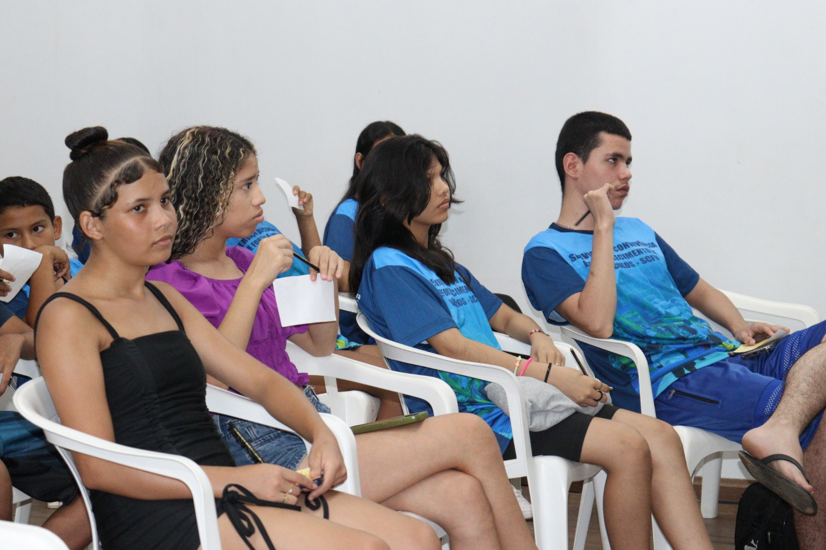 Durante a atividade, os jovens participaram de um momento de aprendizado e reflexão, onde foram incentivados a falar sobre sentimentos, ouvir uns aos outros e compreender que buscar ajuda é um ato de coragem e cuidado com a vida. O espaço proporcionou acolhimento, diálogo aberto e informações essenciais sobre como lidar com os desafios emocionais que fazem parte da adolescência.