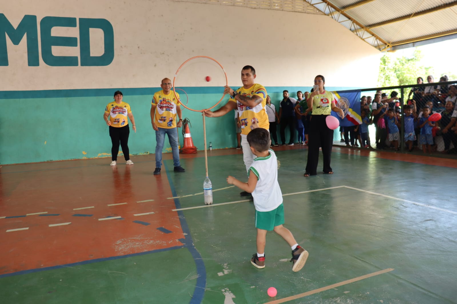 A atividade aconteceu na quadra da Escola Jamel Amed, reunindo alunos de diversas escolas municipais. De forma lúdica e divertida, as crianças participaram de modalidades adaptadas à faixa etária, como corrida entre cones, jogo de pelotas, jogos com bambolês, corrida, revezamento de bastão e cabo de guerra.
