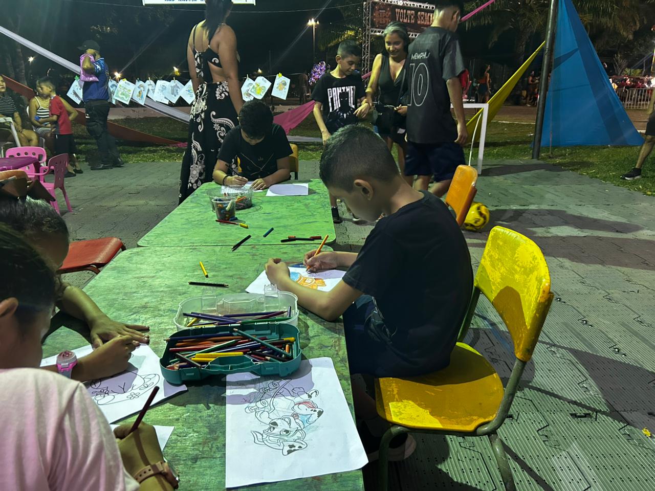 A ação contou com atividades de pintura, brincadeiras, entrega de pipoca e picolé, além da exposição de trabalhos produzidos por crianças atendidas pelo Centro e por outras do município. O espaço também serviu como ponto de troca de experiências e diálogo entre famílias, profissionais e visitantes.