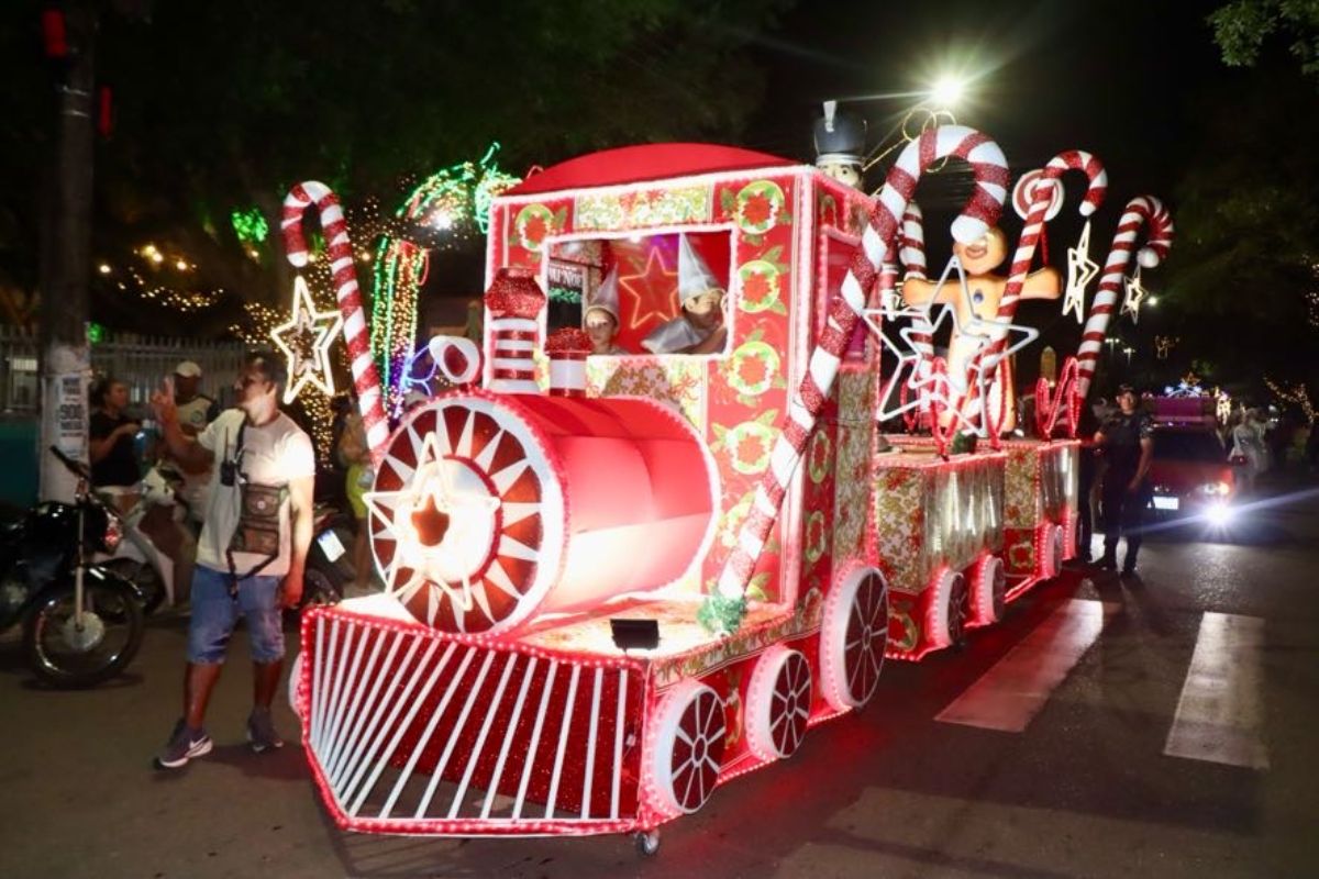O desfile teve início na Quadra Herculano de Castro e Costa e seguiu até a Praça da Igreja de Nossa Senhora de Nazaré, onde o público foi recebido com apresentações artísticas, músicas temáticas, além da tão aguardada chegada do Papai e da Mamãe Noel. A cerimônia de acendimento das luzes da Praça e da Grande Árvore de Natal coroou o momento, arrancando aplausos e emocionando adultos e crianças.