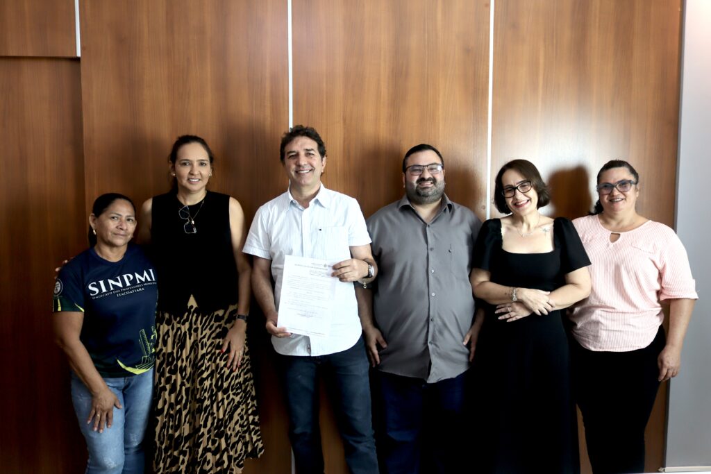 Durante o ato de assinatura, o prefeito recebeu a equipe do Sindicato dos Profissionais da Educação de Itacoatiara, além da secretária municipal de Educação, Vanessa Miglioranza. O momento foi marcado pelo diálogo e pelo alinhamento em torno da implementação do novo piso nacional.