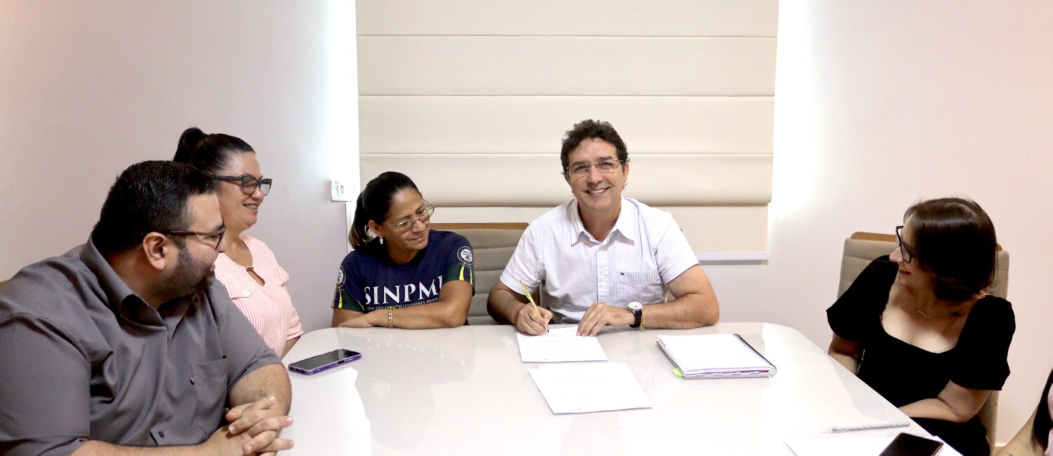 Durante o ato de assinatura, o prefeito recebeu a equipe do Sindicato dos Profissionais da Educação de Itacoatiara, além da secretária municipal de Educação, Vanessa Miglioranza. O momento foi marcado pelo diálogo e pelo alinhamento em torno da implementação do novo piso nacional.